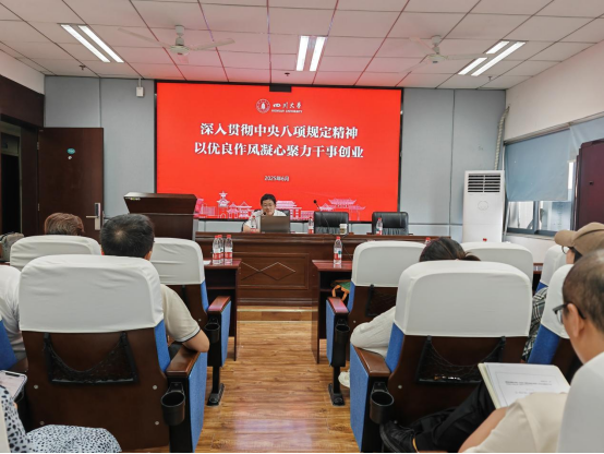 6月26日下午,四川大学历史文化学院(旅游学院、考古文博学院)党委在江安校区文科楼二区704会议室开展深入贯彻中央八项规定精神专题党课暨警示教育大会。学院领导班子成员、党委委员、纪委委员、工会主席、专职组织员、各党支部书记、支委、科级干部、系主任及党员代表共100余人参会。会议由学院党委副书记兼纪委书记姜华主持。
