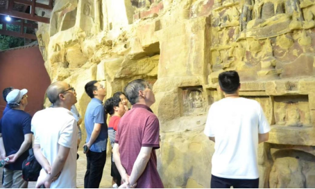 5月31日,我院师生党员在讲解员的引导下参观千佛岩石窟。