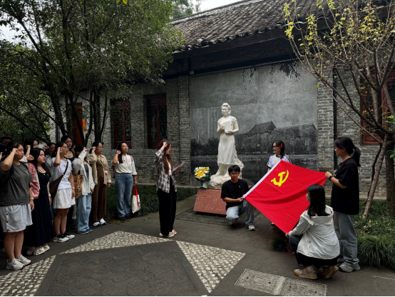 最后,2024级硕士第一支部副书记邹睿同志带领全体党员在江竹筠烈士像前重温入党誓词,在铿锵有力的誓言中,全体党员重忆入党初心,再次坚定了自身理想信念。