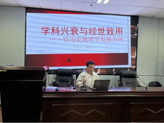 杨朝同志作为历史地理学专业的博士研究生,从大关节处梳理了中国历史地理近一百年学术史、学科史,通过对学科一个世纪间“兴衰沉浮”的更迭,“显学”与“冷门绝学”身份上的切换,讨论“经世致用”是学术研究中不可不讲求的原则和初衷。最终倡议研究生党员们一起在“埋头苦干”与“经济天下”两者兼顾中开展学习研究。