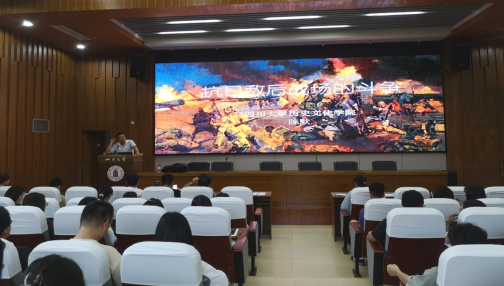 2021年9月26日下午,为深入学习贯彻习近平总书记“七一”重要讲话精神,积极响应党中央的号召,全面深入抓好党史学习教育,切实做到“学史明理、学史增信、学史崇德、学史力行”,我院邀请历史文化学院陈默副教授作题为“抗日敌后战场的斗争”党史教育专题宣讲会,学院共百余人师生参与报告会。本次讲座由我院专职组织员石琼老师主持。