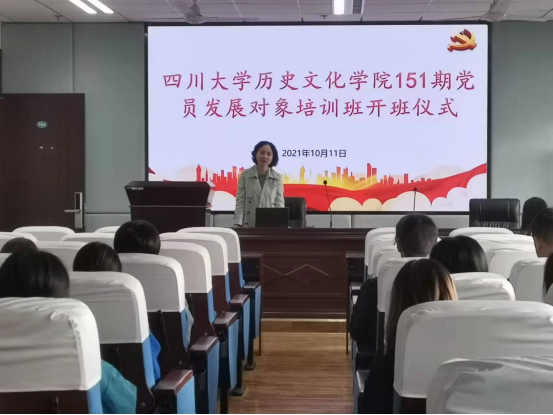 10月11日,历史文化学院151期党员发展对象培训班开班仪式在江安校区604举行。会议由学院专职组织员石琼老师主持,学院50余名党员发展对象参加此次开班仪式。