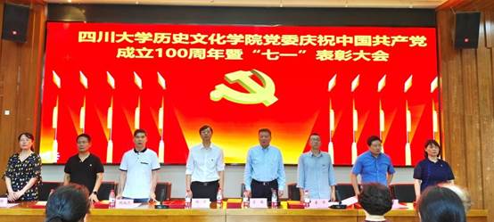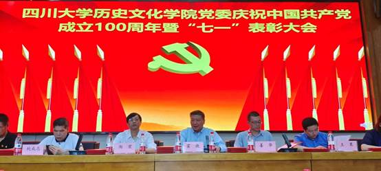 百年征程波澜壮阔,百年初心历久弥坚。2021年6月28日下午,四川大学历史文化学院党委庆祝中国共产党成立100周年暨“七一”表彰大会于江安校区文科楼二区学术报告厅召开。学院党委书记陶宏、院长霍巍、党委副书记姜华、副院长鲍成志、李志勇、王果,以及博物馆副馆长周静和院工会主席王晓辉出席大会,学院各党支部书记及师生党员代表共100余人参加会议。会议由霍巍院长主持。