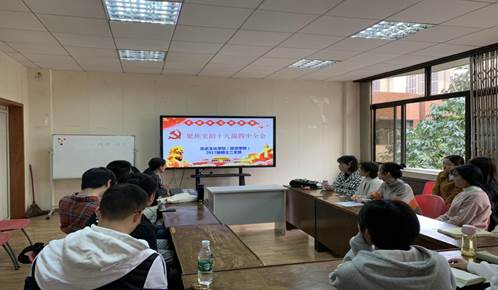 为深入学习贯彻党的十九届四中全会精神,扎实推进“不忘初心、牢记使命”主题教育走深走实,2019年11月15日上午10点,我院2017级硕士二支部在望江校区文科楼421教室开展了支部书记讲党课——聚焦党的十九届四中全会。本次党课由何玉霞老师主讲,支部党员、发展对象及入党积极分子共20人参加。
