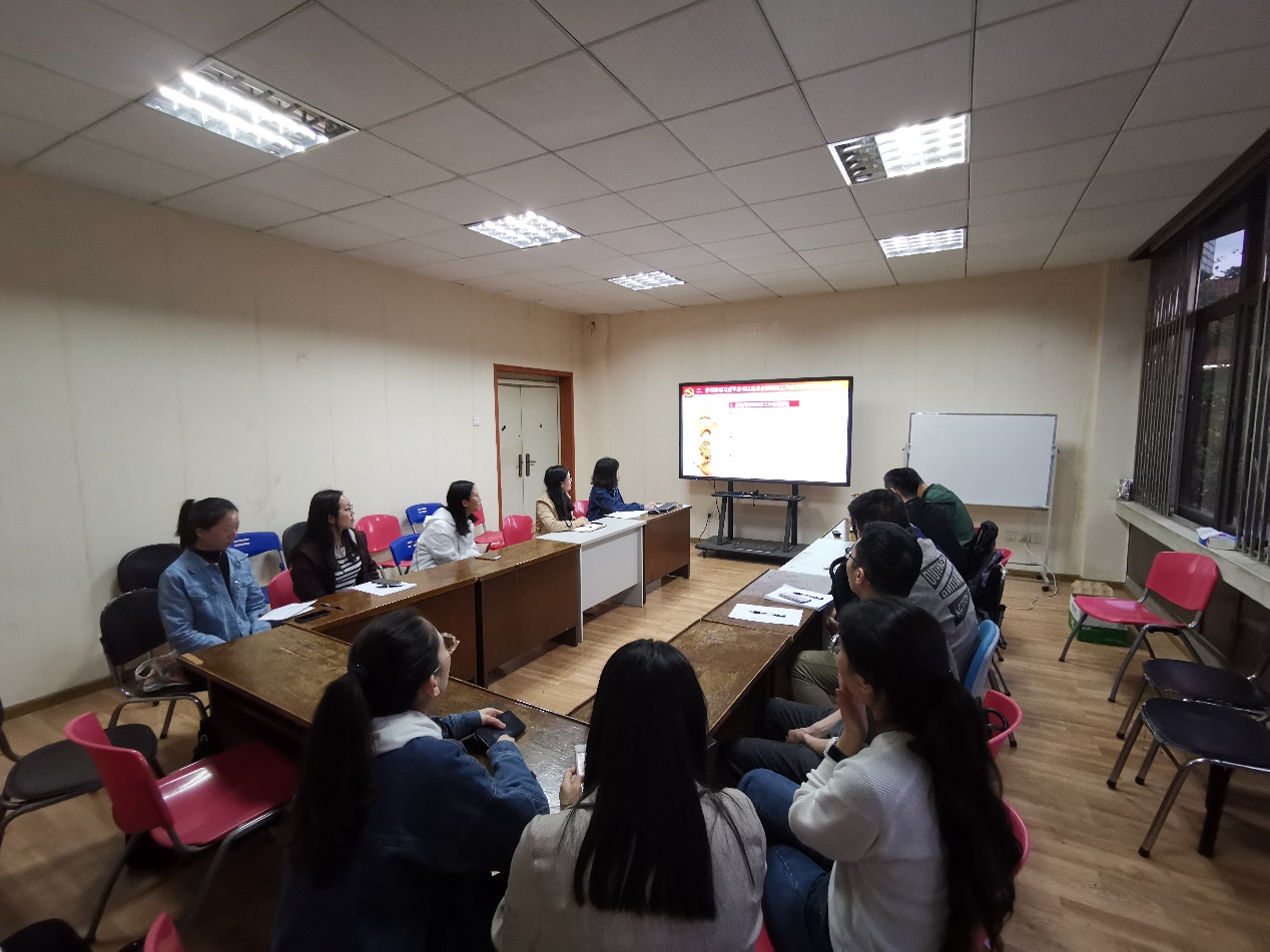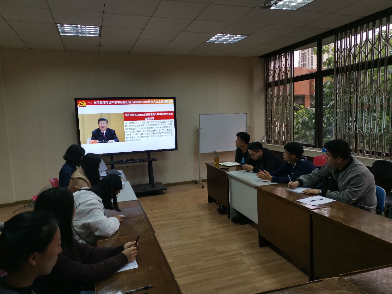 2019年5月7日晚19:00,我院2016级硕士第二党支部“弘扬五四精神、担当时代重任”学习研讨会在望江校区文科楼421举行。本次学习研讨会由党支部书记韩小琴老师主持。第二党支部党员同志参与本次学习研讨会。