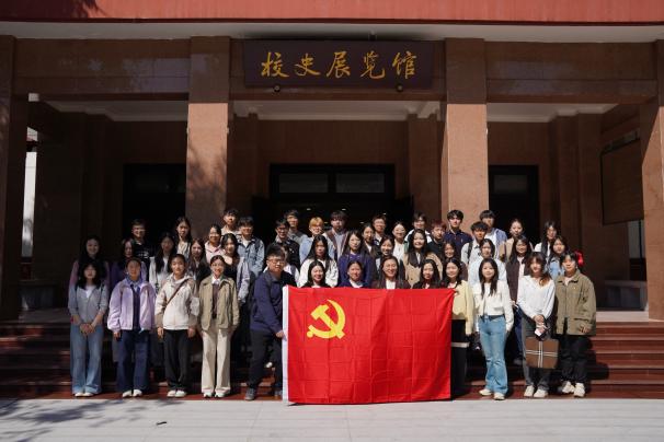 图为师生在江姐纪念馆、校史展览馆合影