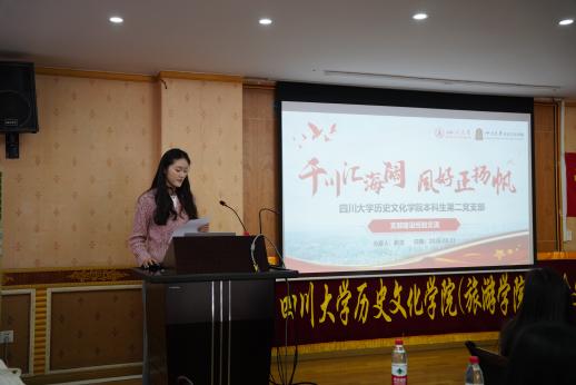 参观结束后,双方进行座谈。四川大学历史文化学院本科生第二党支部书记吴敏主持活动。在党建经验分享环节,四川大学历史文化学院本科生第二党支部围绕党建工作特色与实践经验做了详细介绍。西南财经大学工商管理学院辅导员李顺鑫则聚焦学生党建品牌建设与支部工作法,分享了务实有效的经验成果。双方支部委员靳灵、王若凤同志也就本科生党支部的具体建设进行了经验分享。