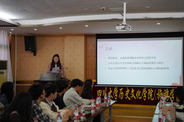 图为四川大学历史文化学院代表分享党建经验