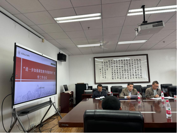 本次座谈会由执行主任鲍成志副院长主持,鲍院长首先汇报学校关于进一步加强课堂教学质量管理的要求,精准传达工作方案的通知精神,要求进一步提高课堂教学管理责任意识,同步开展课堂教学管理专项督导工作,并要求各教研室组织教师学习学校下发的《关于进一步加强课堂教学质量管理工作方案的通知》文件要求。