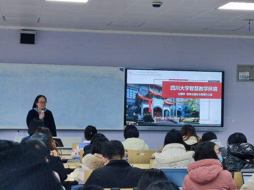 为进一步更新教师信息化教学理念、改进教学方法,提高教师智慧教室应用水平,历史文化学院(旅游学院、考古文博学院)于2021年12月9日上午成功举办2021年教师能力提升培训——智慧教学能力提升培训专题讲座。12月9日上午,专题讲座在江安校区第一教学楼C座204举行,讲座由学院教务科李建艳老师主持,邀请了田建林、汪静、李玲和鲁力等四位老师就智慧教学环境、平台和课堂展示设计展开讲授,学院专职教师和研究生助教100余人参加了培训。
