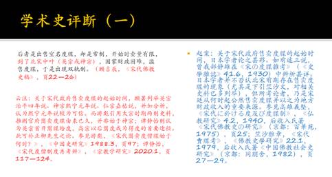 这是一条关乎宋代政府售卖度牒的起始时间的学术判断。云同学利用柳著的参考依据,一方面回查了顾吉辰先生的《宋代佛教史稿》,一方面又扩大阅读范围,查看了游彪和谭静怡两位学者的论文,由此提出“补正”意见。赵先生则进一步从域外著作的查读情况,指出这些不同意见实际上日本学者很早之前就已“辨析甚详”。这就提示读者,不仅要注意资料的反查和相关文献的比照,还要尽可能把查找和阅读范围延伸至域外文献、非汉语文献,从中或许会有一些意想不到的新收获。