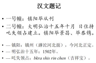 在完成学术史梳理之后,聂先生就进入了本次讲座的重点,那就是回答开头提出的两大问题。第一个问题,即建幢缘起,助缘人名字和身份。先生主要是通过汉文题记的解读、两座墓幢西夏文题记的识读与对比来进行的,主要围绕下面几张PPT来讲解: