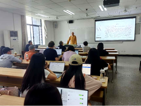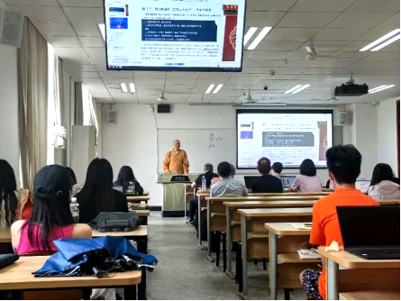 2025年6月7日下午,知名梵呗音乐家、武术家,国家级非物质文化遗产代表性传承人释永悟,受邀来到四川大学旅游学院为同学们带来一场主题为“非物质文化遗产与国民健康——以国家级非遗鱼山梵呗及禅拳道功夫传承发展为例”的精彩讲座。此次讲座于江安校区文科楼三区402教室举行。包含来自奥地利等国10余位留学生30余位博士和硕士研究生,共同聆听了这场非遗进校园的讲座。