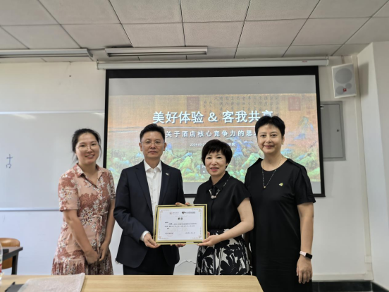 在讲座的最后环节,由旅游学院院长助理王俊鸿老师向陈伟先生颁发旅游管理专业硕士学位产业导师聘书。旅游与景观学系副教授廖峰老师、国际旅游与酒店管理系副教授贺腊梅老师也出席聘书颁发仪式。