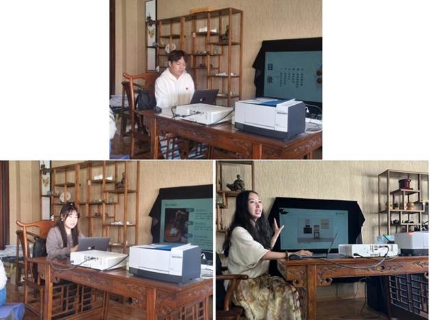 之后,来自艺术学院的张垚博士带领大家穿越千年的茶文化长河。他从茶的起源讲起,追溯了这一古老饮品如何从最初的发现,逐步演变成今天丰富多彩的茶文化,详细阐述了不同历史时期茶的冲泡技艺如何随着社会的发展而演变,以及茶具如何随着冲泡方式的变化而不断革新。化学工程学院的刘思琪从茶叶出发,向各位同学讲解了茶叶在品茗欣赏之外,从茶叶中提取的茶多酚也与我们生活息息相关,在医药、化工领域有广泛的应用。历史文化学院的樊欢老师以茶作为载体,向各位同学讲解了茶与当代艺术结合的创作案例,分享了艺术家张羽的作品,探讨了当代艺术的表现形式与内涵。