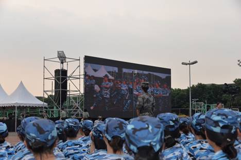 为期两周的军训生活在此刻接近尾声,烈日下,挺拔如松、互相扶持的身影,铿锵有力、整齐划一的步伐,嘹亮高亢、振奋人心的口号……其中不乏汗水与泪水,欢笑与咬牙坚持,而当同学们开始观看由校学生会、电视台记录的军训点滴时,过去两周的一切酸甜苦辣,都化作了一声声惊呼、一声声感叹,最后轻轻地落在每个人的心底,成为一段段难以忘怀的宝贵人生经历。