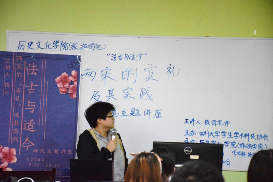 2019年5月20日19:20,由四川大学学生学术科技协会主办,我院团委、学生会学术科技部承办的“法古与适今——两宋的‘宾礼’及其实践”特色主题讲座在一教A222教室成功举办。本次讲座邀请到钱云老师担任主讲人,为同学们讲解有关两宋“宾礼”的知识。