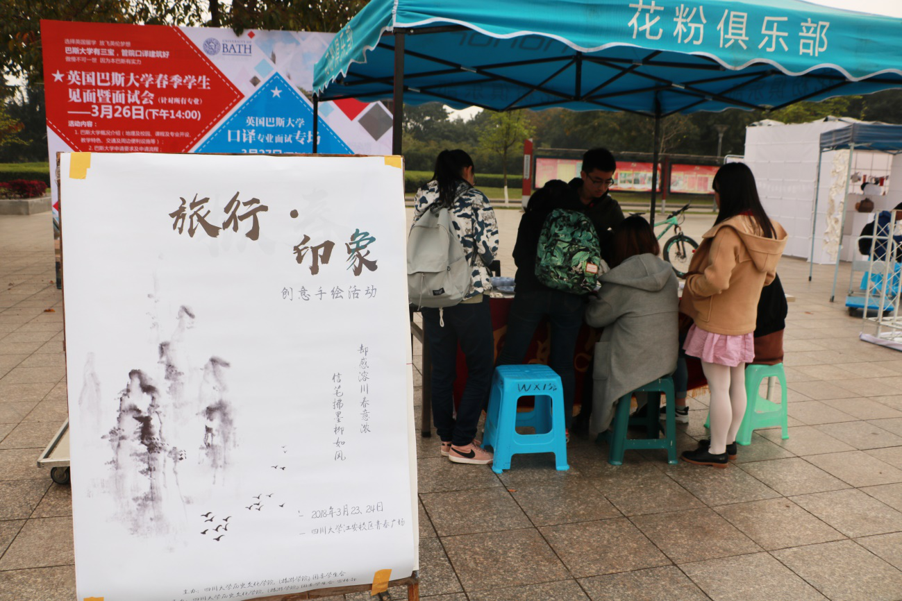 2018年3月23日在江安校区青春广场举办了由历史文化学院(旅游学院)宣传部承办的面向全校同学的为期两天的“旅行·印象”手绘活动,得到了同学们的积极参与。