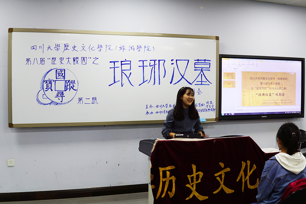 2018年3月21晚19:20在江安校区综合楼B座306教室举行了历史文化学院(旅游学院)第八届历史大观园 之“国宝寻踪”系列活动第二期:“琅琊汉墓”观影会。本次活动由历史文化学院(旅游学院)团委、学生会学术科技部承办,许多同学前来观看这部《琅琊汉墓发掘记》。