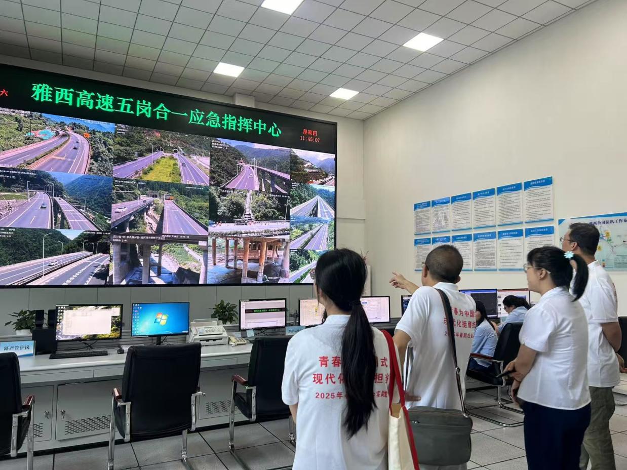 7月18日,团队走进雅西高速应急指挥中心。这条“云端天路”凭借“五岗合一”智能系统、北斗定位、AI算法等技术,实现全线毫米级监测,通车以来事故率下降67%。队员们了解到,建设过程中创下多项世界纪录:腊八斤特大桥桥墩高达182.5米,干海子特大桥首创双螺旋隧道设计。雅西高速不仅是一条交通要道,更是中国工程技术创新与生态保护结合的典范。