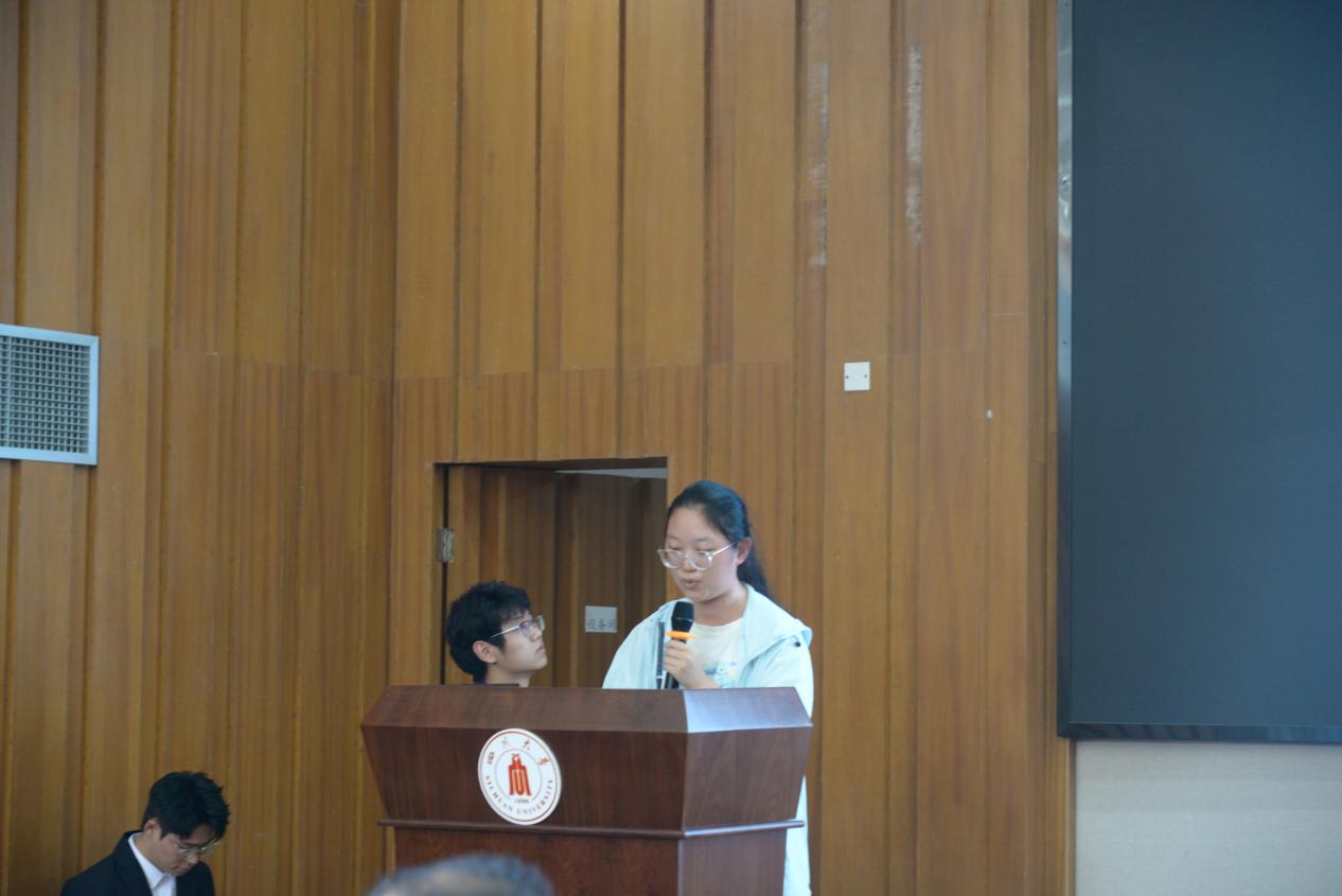 (图为学生代表进行部门工作汇报)