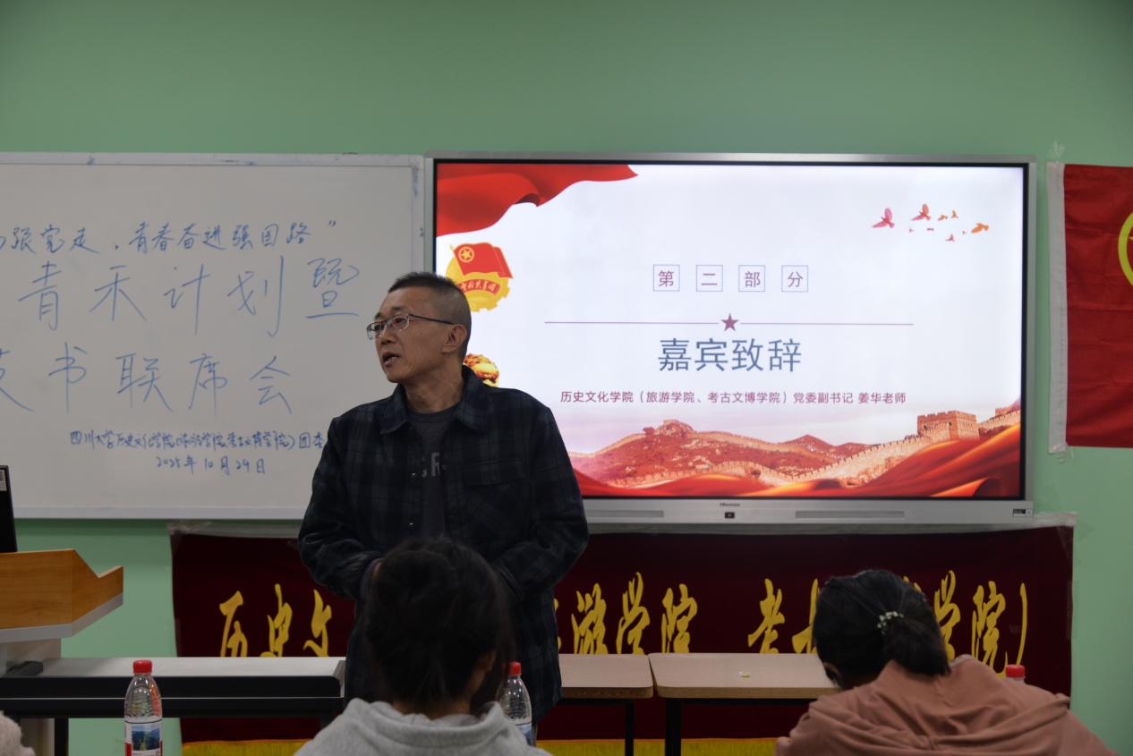 学院党委副书记姜华老师致辞,强调要持续加强团的组织体系建设,深化党、团、班一体化建设。他指出,组织部成员与各团支书应强化责任担当,加强价值引领,激发成员主人翁意识,推动形成“全员参与”的良好氛围。