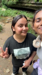 炎热的天气,2个多小时的徒步,8.3公里的路程,加上道路湿滑、崎岖起伏,给长期伏案师生带来不小的考验。在行程后半段,师生满头大汗,咬牙坚持。主动帮忙背包,让出登山杖,难爬的地方伸手拉一把……大家坚定信心,锚定目标,在汗水与努力中锤炼意志;师生携手互助共进,汗水浸透坚韧,峡谷见证师生情长。
