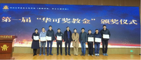 2024年1月19日,第一届“华可奖教金”颁奖仪式在四川大学博物馆负一楼报告厅举行。四川华可都市文旅集团总经理张立一行及学院党政领导班子、教职工代表出席了本次颁奖仪式。仪式由我院党委副书记姜华主持。