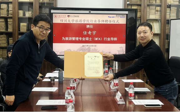 党的二十大报告提出“教育、科技、人才是全面建设社会主义现代化国家的基础性、战略性支撑。”四川大学作为国家“双一流”建设高校(A类),承担着为党育人、为国育才的使命。为切实推进产学研深度融合创新发展,四川大学历史文化学院(旅游学院、考古文博学院)和携程集团联合主办,会展与休闲学系承办的“四川大学旅游学院与携程集团校企合作交流会暨行业导师聘任仪式”于12月4日在四川大学望江校区成功举办。