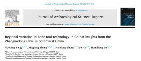 in Southwest China”的研究论文,报道了贵州招果洞遗址骨器研究的最新进展。四川大学考古文博学院在读博士研究生杨国兵与张兴龙为论文共同第一作者,通讯作者为吕红亮教授。参与研究的还有湖南省文物考古研究院张寒冬(四川大学考古文博学院毕业生)和四川大学考古科学中心胡越副研究员。该项研究得到了国家自然科学基金