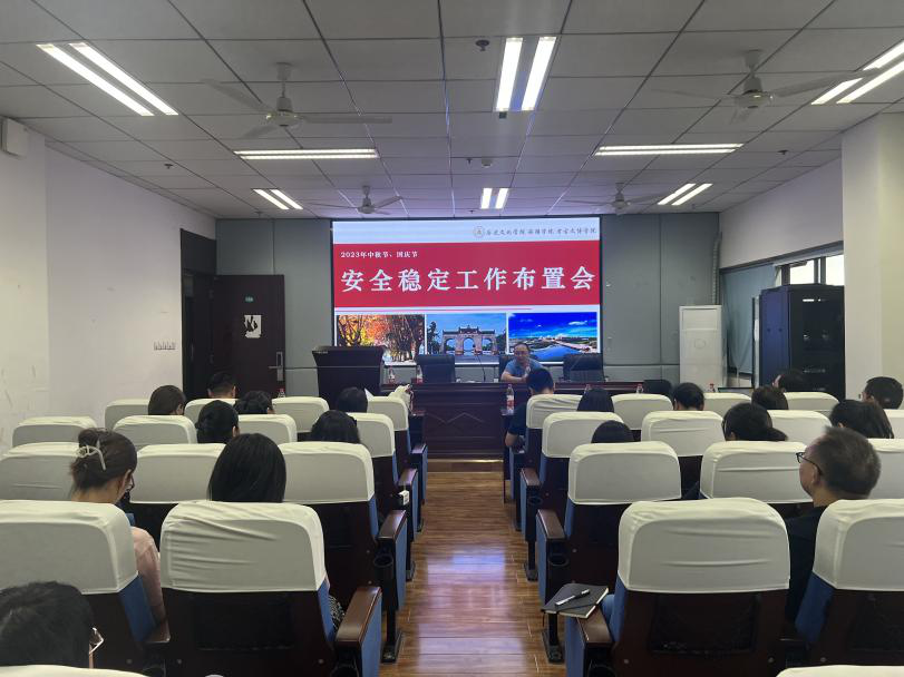 随后,张霖副院长表示,要落实完善学院应急处置预案,遇到突发事件、重要紧急情况要第一时间上报学院领导,第一时间采取有效措施妥善应对和处置,确保“中秋国庆”假期校园秩序安全稳定。