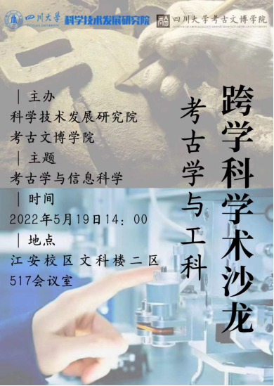 2022年5月19日下午在四川大学江安校区文科楼二区517会议室举行了由科学技术发展研究院与考古文博学院主办的考古学与工科学术沙龙。此次沙龙旨在探讨工科与考古学的合作点,畅想新技术在考古学应用的可能性与前景,积极推进文科与工科深度交叉融合,深化新文科、新工科内涵式发展,助推我校新一轮“双一流”建设。来自科学技术发展研究院、考古文博学院、计算机学院、灾后重建与管理学院、电气工程学院的二十余位老师参加了此次学术沙龙,8位老师做主题发言。