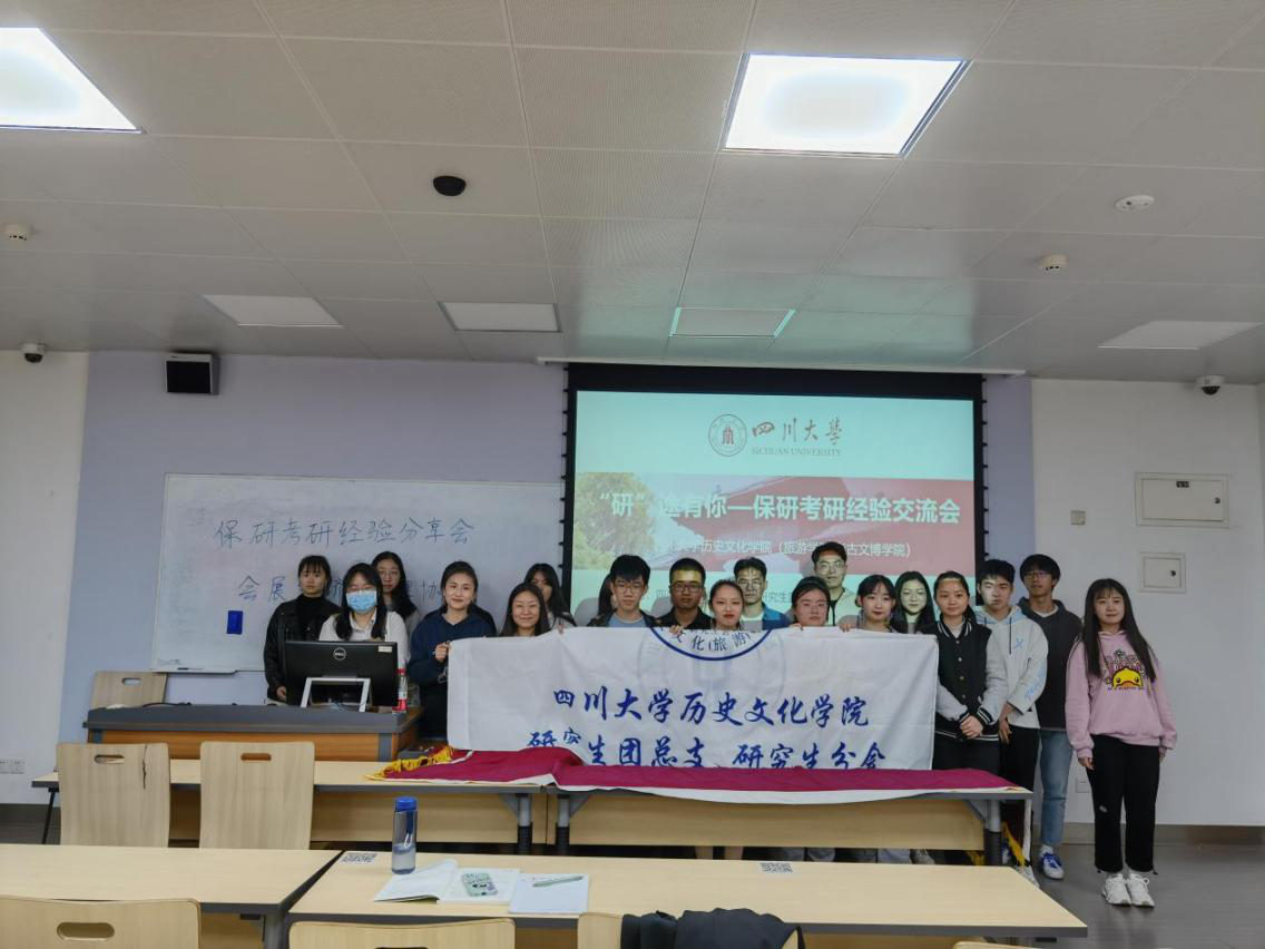 为推动我校优良学风建设,激发学生对于读研深造的兴趣,2021年4月9日19:30-21:30,由四川大学历史文化学院研究生团总支、研究生分会学术交流中心和四川大学会展经济与管理协会主办的“研途有你”——保研考研经验分享会于江安校区第一教学楼A座606教室成功举办。本次经验分享会的主讲嘉宾为历史文化学院(旅游学院 考古文博学院)优秀学生代表研究生2020级旅游管理专业硕士晏愉、罗羽杉,本科2017级会展经济与管理专业彭俊霖及2017级旅游管理专业胡思可。
