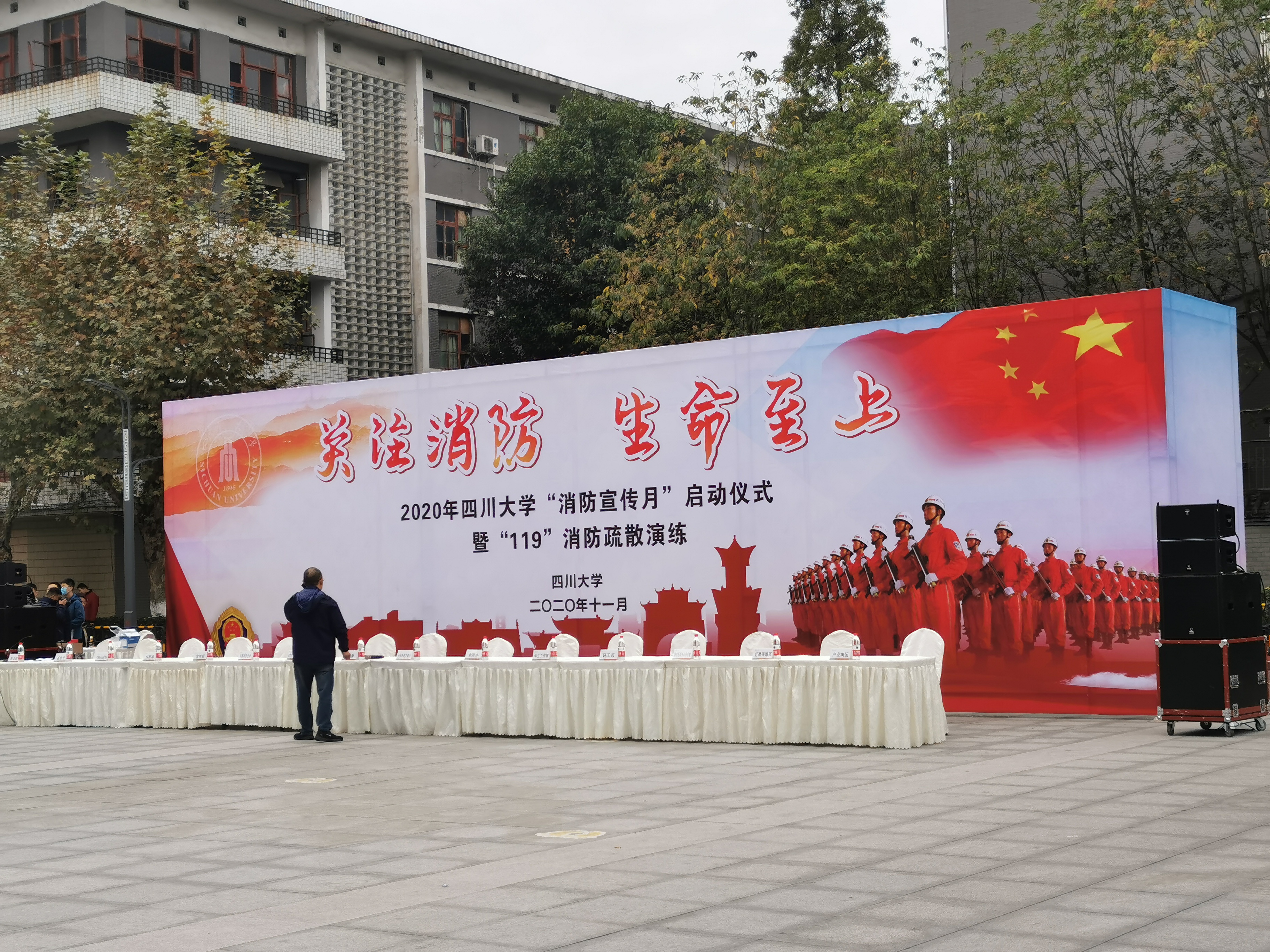 2020年四川大学“119”消防疏散演练于2020年11月6日上午10点在华西校区东苑食堂广场举行,我院辅导员韩小琴带队学生曾莹、苏洋、唐俊、林圣迪、罗英参加本次演练;并在学校演练后,对学院师生代表进行了消防知识的培训。