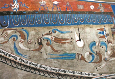 皮央东嘎石窟壁画中飘逸的幡。