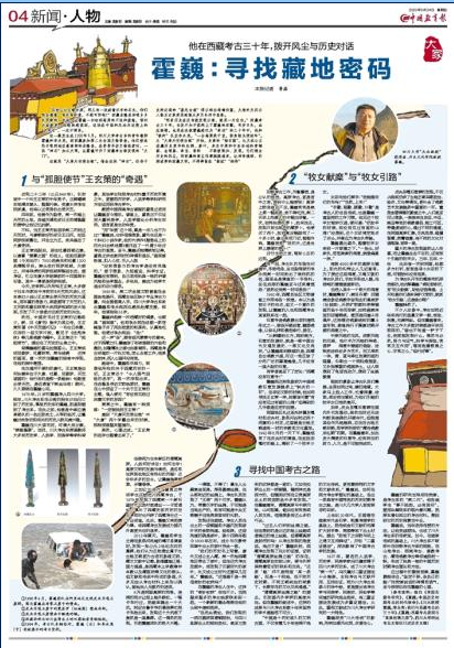 9月24日,中国教育报第4四版整版以《霍巍:寻找藏地密码》为题,对我院霍巍教授多年从事考古学术研究进行了深入报道。全文如下: