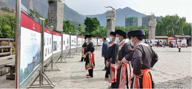 5月15日一早,四川大学博物馆一行来到茂县,携手中国羌族博物馆,在古羌城广场举行了文化宣传活动。作为拥有厚重历史文化底蕴的百年名馆,四川大学博物馆结合馆藏文物和档案资料,编撰设计了与羌族历史文化、人文风貌、宗教习俗、农业生产、建筑群落、自然风光等有关的大型图文展板,在广场公开展示,吸引本地羌族群众和外地游客驻足观览。中国羌族博物馆也制作展板和宣传单,通过展示羌族博物馆近年来举行的重大展览活动,让公众了解博物馆对羌族文化的研究、保护和传承所做的工作。