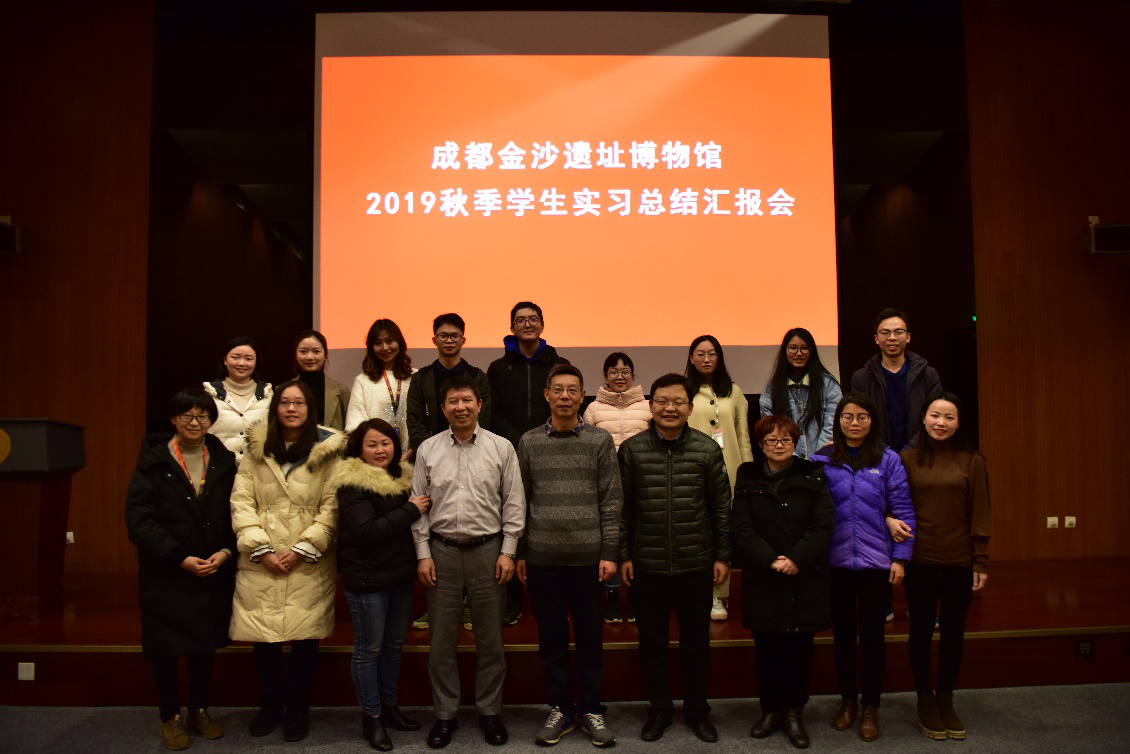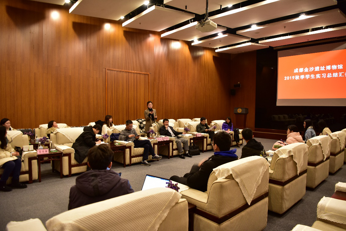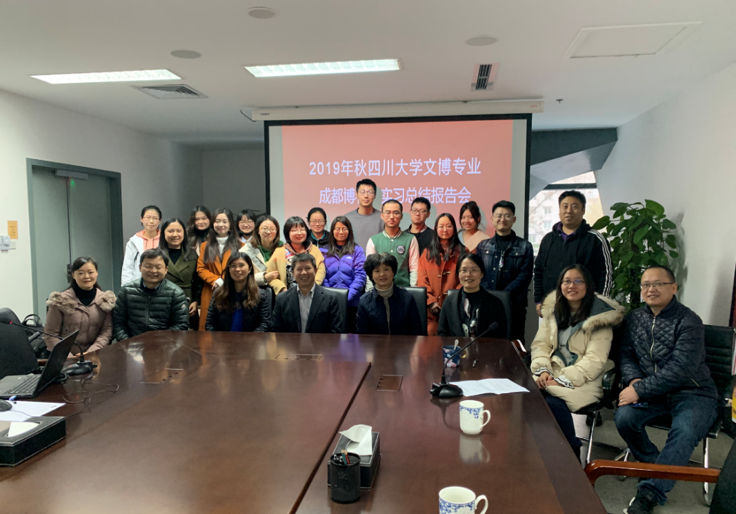 2020年1月7日,四川大学文物与博物馆学专业2019年秋季实习总结报告会分别在成都金沙遗址博物馆、成都博物馆举行。两家博物馆的领导、各部门实习指导老师、四川大学历史文化学院领导、实习带队教师及实习学生参加了会议。