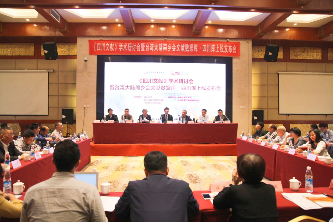 2019年4月19日上午,由中国社会科学院和中华全国台湾同胞联谊会共同指导,四川大学、四川省台湾同胞联谊会、社会科学文献出版社联合主办的《四川文献》学术研讨会暨台湾大陆同乡会文献数据库·四川库上线发布会在成都召开。四川省台湾同胞联谊会刘琪会长、四川大学晏世经副校长、社会科学文献出版社社长谢寿光出席会议并致辞。发布会由四川大学历史文化学院党委书记陶宏主持,四川大学、四川师范大学、西南民族大学等高校与科研机构的数十位专家学者和来自四川地区图书馆的嘉宾出席了此次会议。