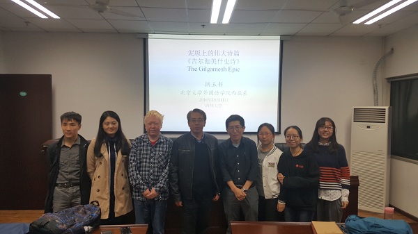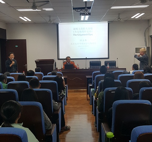 2016年10月12日我院邀请北京大学拱玉书教授为我院师生开设校外专家课程:《吉尔伽美什史诗》,地点在四川大学江安校区文科楼二区704会议室展开,拱玉书教授现任职北京大学东方文学研究中心、北京大学外国语学院西亚系教授,博士生导师,北京大学古代东方文明研究所教授,北京大学东方文学研究中心古代文献研究室主任,北京大学(震旦)古代文明研究中心专家组成员,中国社会科学院古代文明研究中心专家委员会委员。