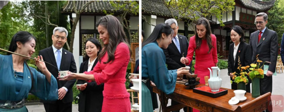 11月11日上午,位于四川大学望江校区旁的望江楼公园内古韵流淌,西班牙王后莱蒂西娅在出席西班牙诗人安东尼奥·马查多诞辰150周年纪念活动后,于锦江畔开启中国传统茶文化之旅,感受四川非遗魅力。