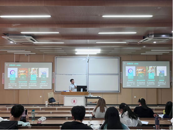 2024年5月24日,四川大学旅游学院旅游管理专业2000级校友、成都锦禧悦庭酒店管理有限公司总经理杜丘先生受邀回到母校,为2023级的同学们带来“酒店成本控制”专题讲座。本次讲座由四川大学旅游学院院长助理王俊鸿副教授主持。