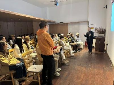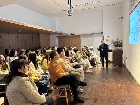 同学们依次走访了完美文创公园、东八区影视文创园,并在萌想星球文创园进行深入参观。园区负责人谢祥德先生为同学们系统讲解了该园区的空间规划理念、业态布局逻辑与品牌孵化场景,引导大家从“规划者”与“运营者”的双重视角,理解老旧仓库转型为文化社交公园的实践路径。