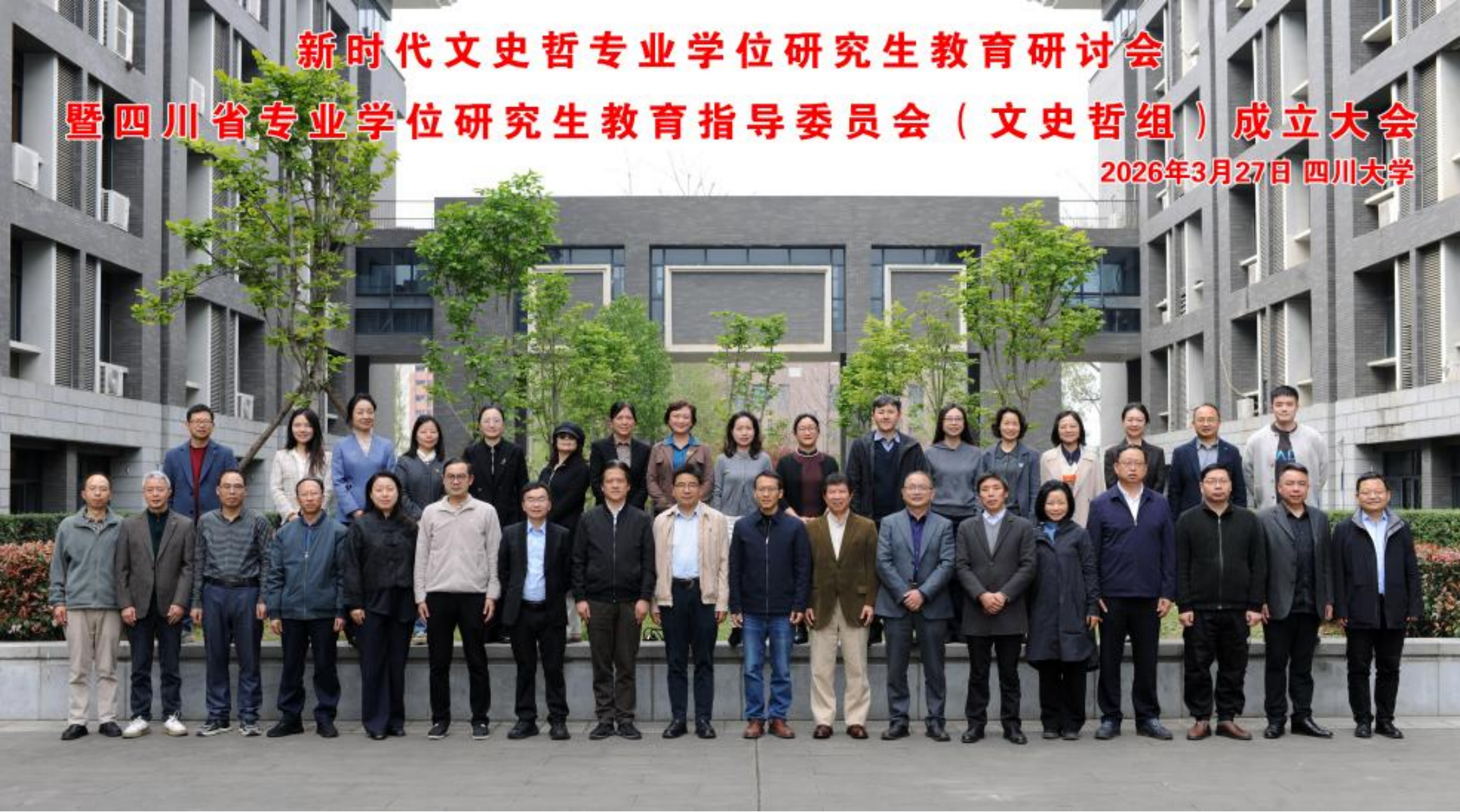 2026年3月27日,新时代文史哲专业学位研究生教育研讨会暨四川省专业学位研究生教育指导委员会(文史哲组)成立大会在四川大学江安校区文科楼顺利召开。